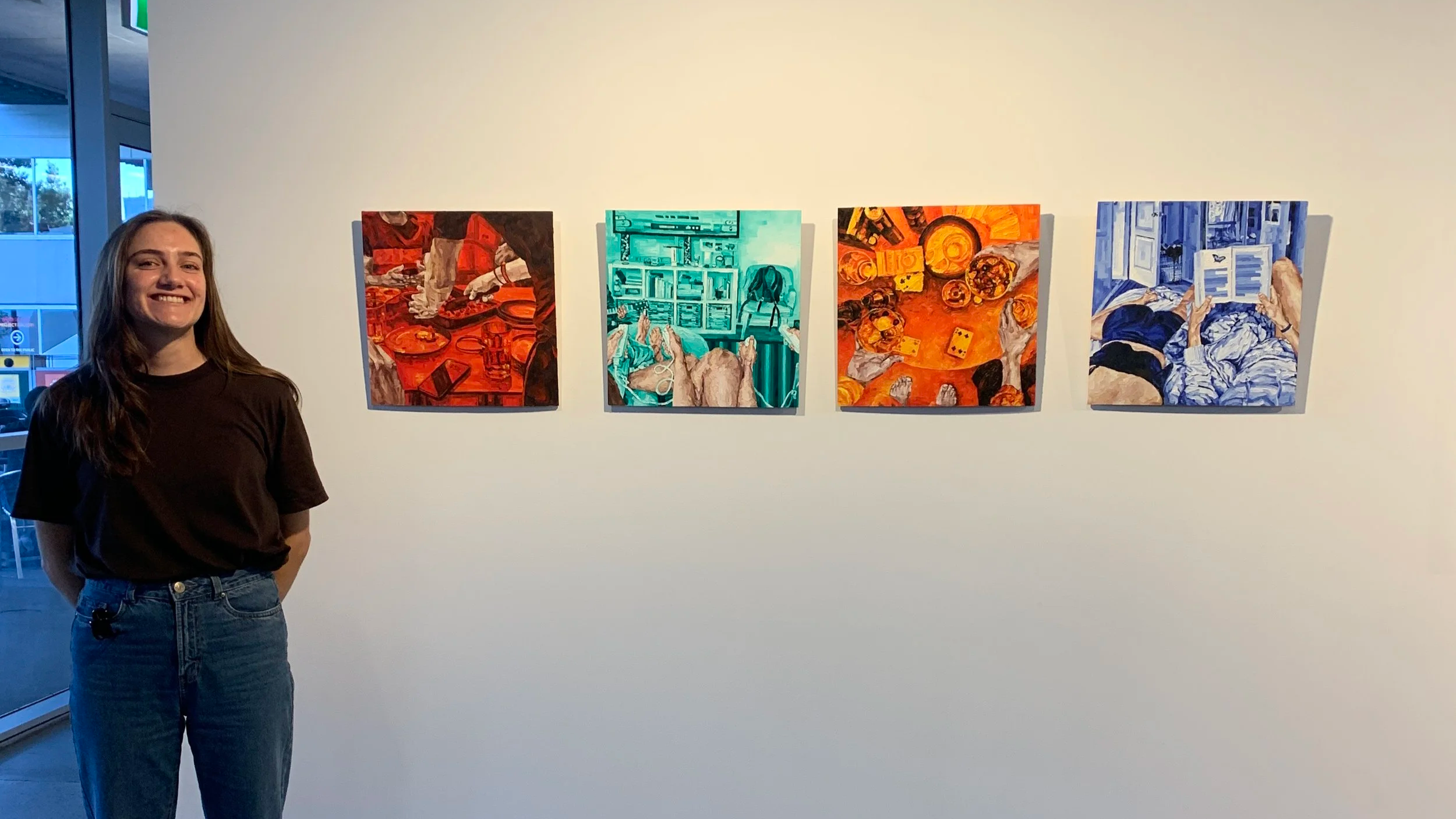 Her work explores themes of belonging, transition, and the search for grounding while living far from home, inviting viewers to find their own reflections in each scene.